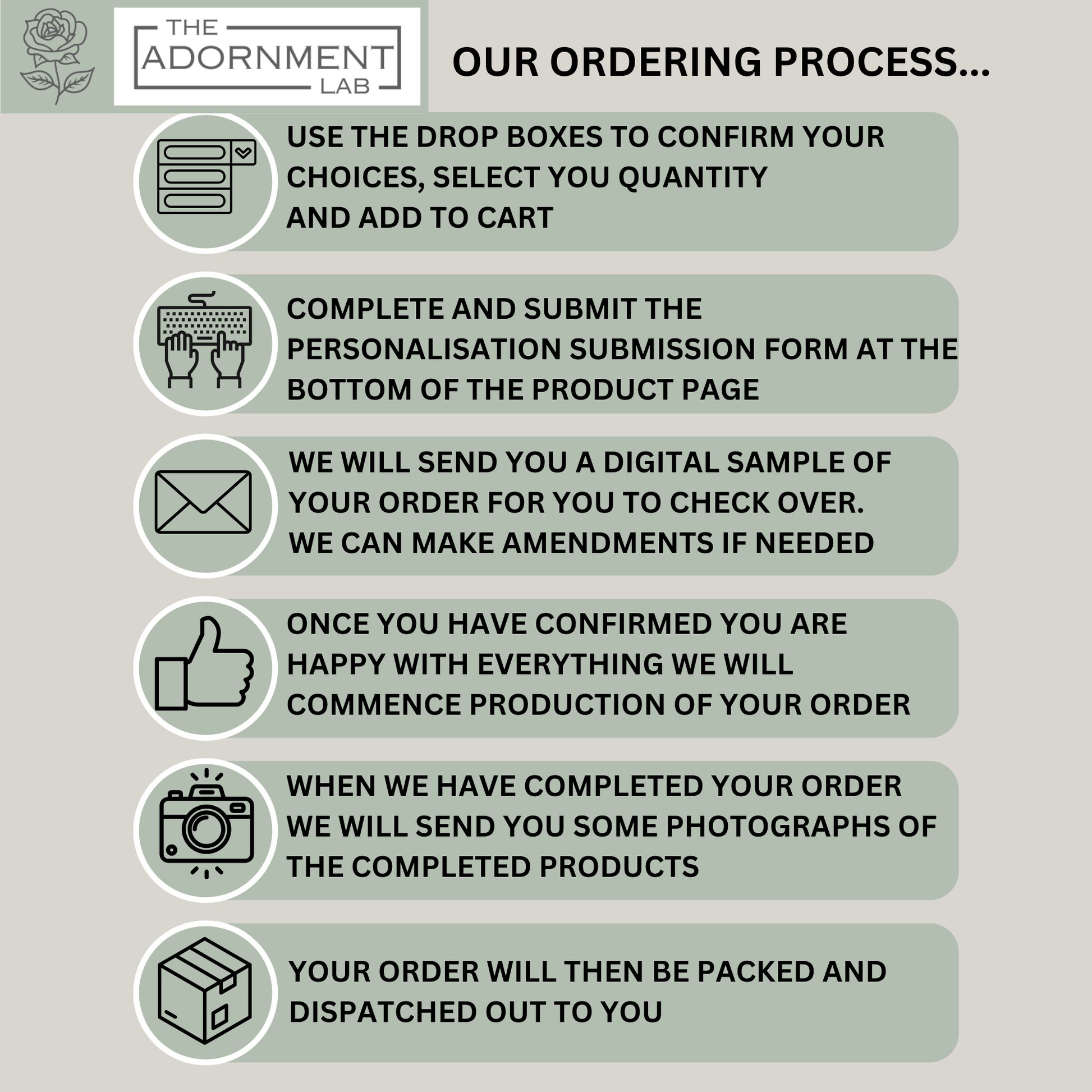 STEP TWO - At the bottom of the product page you will find a small form for you to complete with all your personalisation requirements.